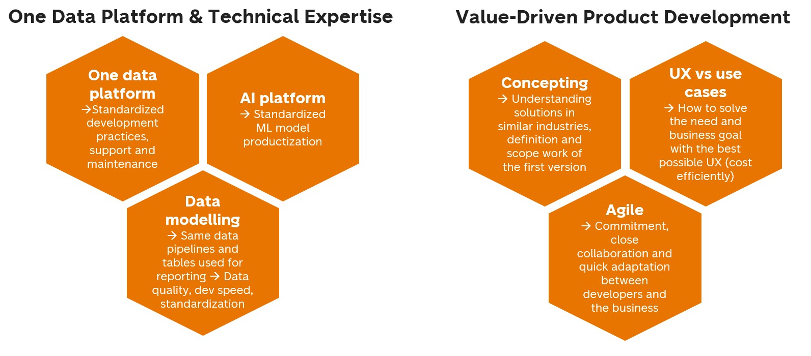 UX driven by concrete use cases kept the tools simple and effective. Interfaces were designed around the decisions users need to make—avoiding unnecessary complexity and limiting features to what supports those decisions. This made advanced analytics understandable and accessible and also kept implementation cost‑efficient. In practice, “less is more” proved true: simpler but still powerful tools to a selected high-impact use case are adopted faster and used more consistently.